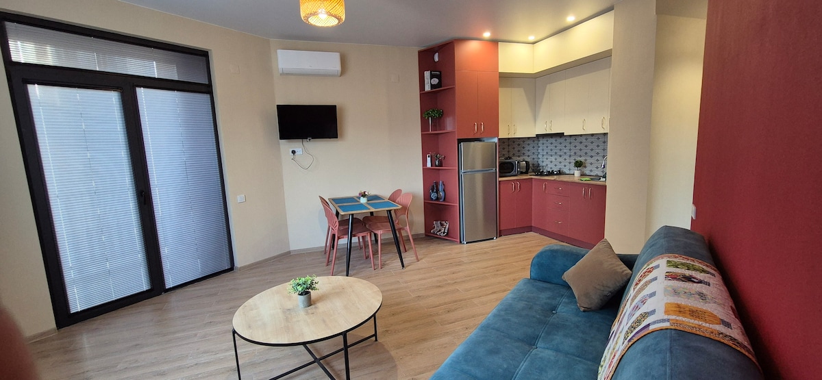 Me complace presentarte mi apartamento en Tiflis. Está equipado con todas las comodidades e instalaciones necesarias para estancias cortas y largas. Disfruta de tu estancia en un apartamento tranquilo. • Wifi • TV de pantalla plana. • Cocina con todos los accesorios. • Baño completo con todos los accesorios. • Aire acondicionado/calefacción. • Balcón con sofá y un entorno precioso. A 2 minutos de la estación de autobuses. A 10 minutos de la estación de metro Samgori (con autobús). A 150 metros del departamento de policía. A 2 minutos del parque.