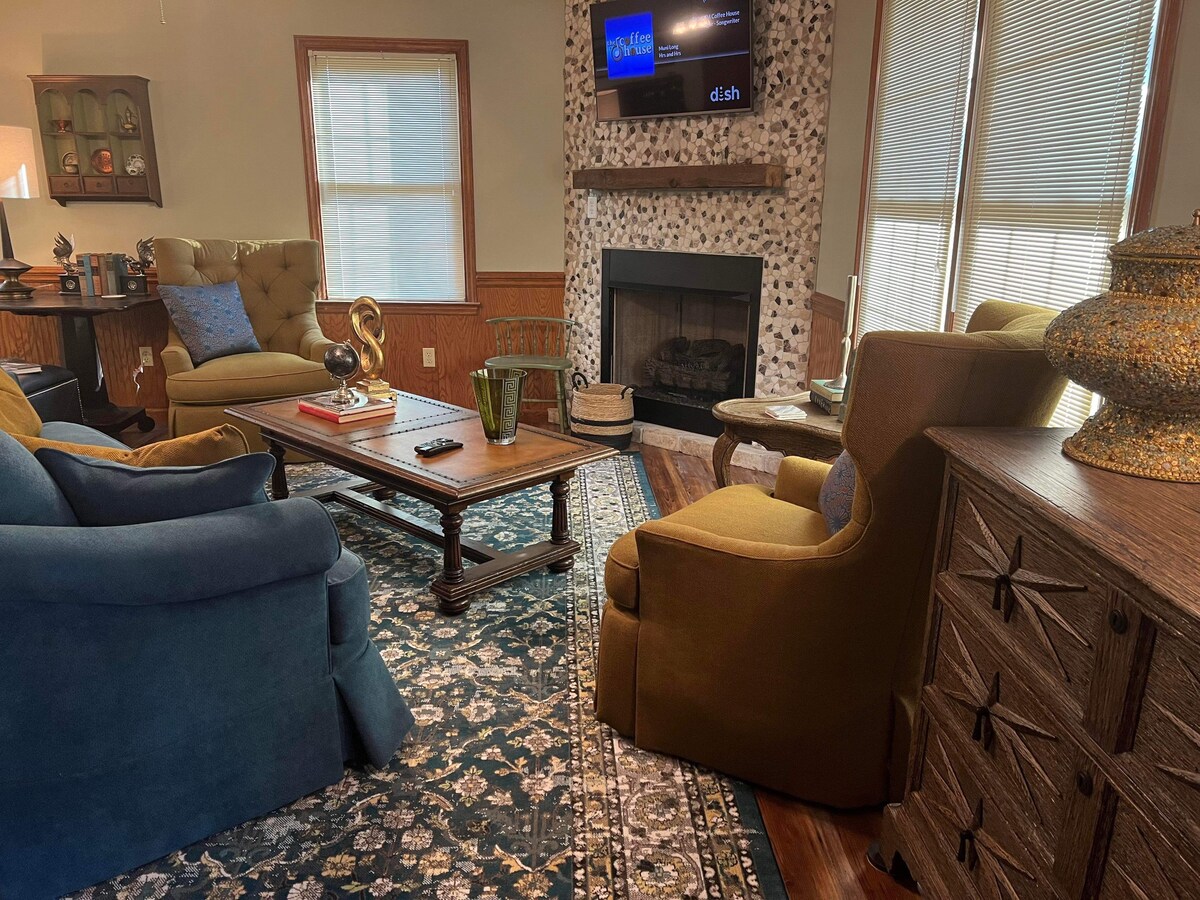 There is something for everyone at the Cabin at Riverview. Go tubing on the river or hike nearby Buffalo Mountain. Or take advantage of all the cozy indoor spaces we’ve created for relaxing (or reading or puzzling or playing a game). Enjoy the soothing sights and sounds of the water while rocking on the front porch. Close to many attractions in Meadows of Dan, Galax, Wytheville and Mount Airy. Please note that there is a $50 added fee for pets that is passed on to our cleaners.