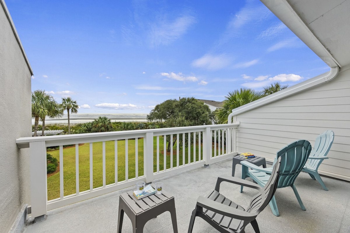Villa Kiawah en el segundo piso, cerca de la playa (a menos de 3 minutos a pie) sin carreteras que cruzar, cerca de todo. Actualizado. Perfecto para parejas que buscan una escapada tranquila a la playa. Sofá cama para niños. Porche cerrado con vistas al bosque marítimo. Observa a los ciervos deambulando y escucha el canto de los pájaros. Excelente ubicación para correr al amanecer o pasear por la playa con una taza de café. Nuestro apartamento puede alojar cómodamente a 3 adultos, o 2 adultos y 2 niños de 12 años o menos.