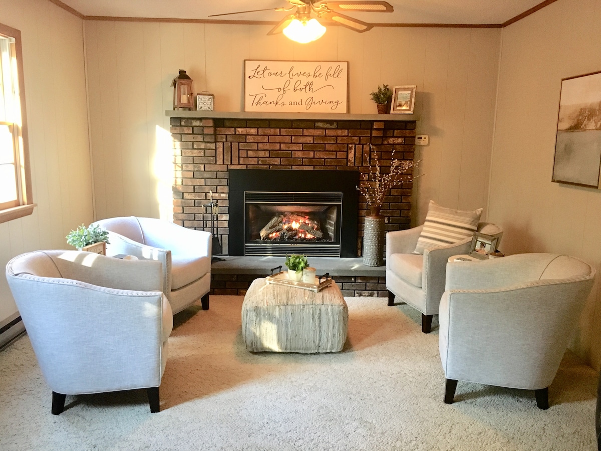 ¡Te damos la bienvenida a The Refuge! Este chalet reformado de 3 dormitorios y 2 baños es el lugar de reunión familiar perfecto para todas las estaciones. Enorme sala de juegos equipada con mesa de billar, ping pong, futbolín y cómodos asientos con TV. Amplia propiedad privada con hamacas, chimenea, patio delantero y trasero con mesa de comedor. La entrada circular es cómoda para coches y barcos. Convenientemente ubicado con lanzamiento público de barcos a menos de una milla de distancia. Vuelve a casa con camas cómodas, fuego cálido, cocina equipada, lavandería y espacio de trabajo.