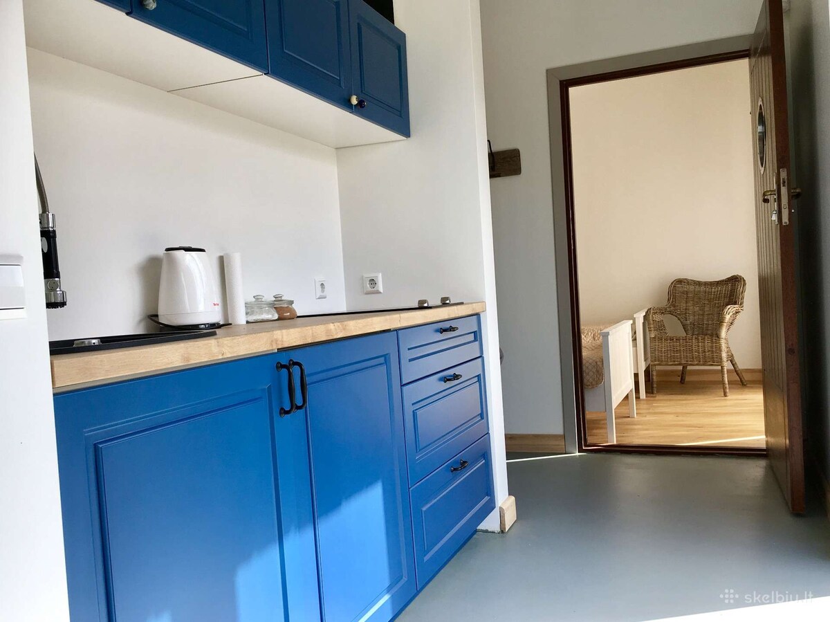 2 bedroom separate house for rent. You can see Baltic sea the minute you step on the street. Fully equipped kitchen and living room. Outside terrace. Small Pavilosta village has a port, few food stores, fish store, cafes and even wakeboarding place. Pavilosta is known for its sandy and windy beaches, suitable to kiteboard and windsurf. Rented Saturday to Saturday.
