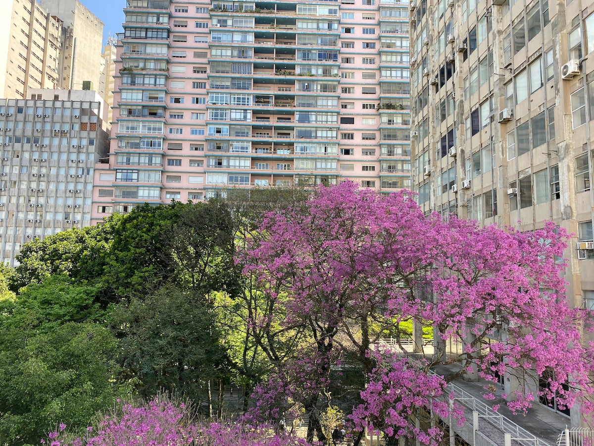 ¡Explora São Paulo sin gastar mucho! Nuestro estudio central está al lado de la estación de metro Anhangabaú y Shopping Light. Estarás cerca de iconos como el Teatro Municipal, el Farol Santander, el Sampa Sky, el Copan y el barrio de Liberdade. Nuestro espacio tiene capacidad para 4 personas, en un edificio con conserje las 24 horas. Ofrecemos: cama queen + sofá cama, cocina equipada, Smart TV y hamaca. ¡Ideal para quienes buscan practicidad, economía y movilidad en el corazón de la ciudad!