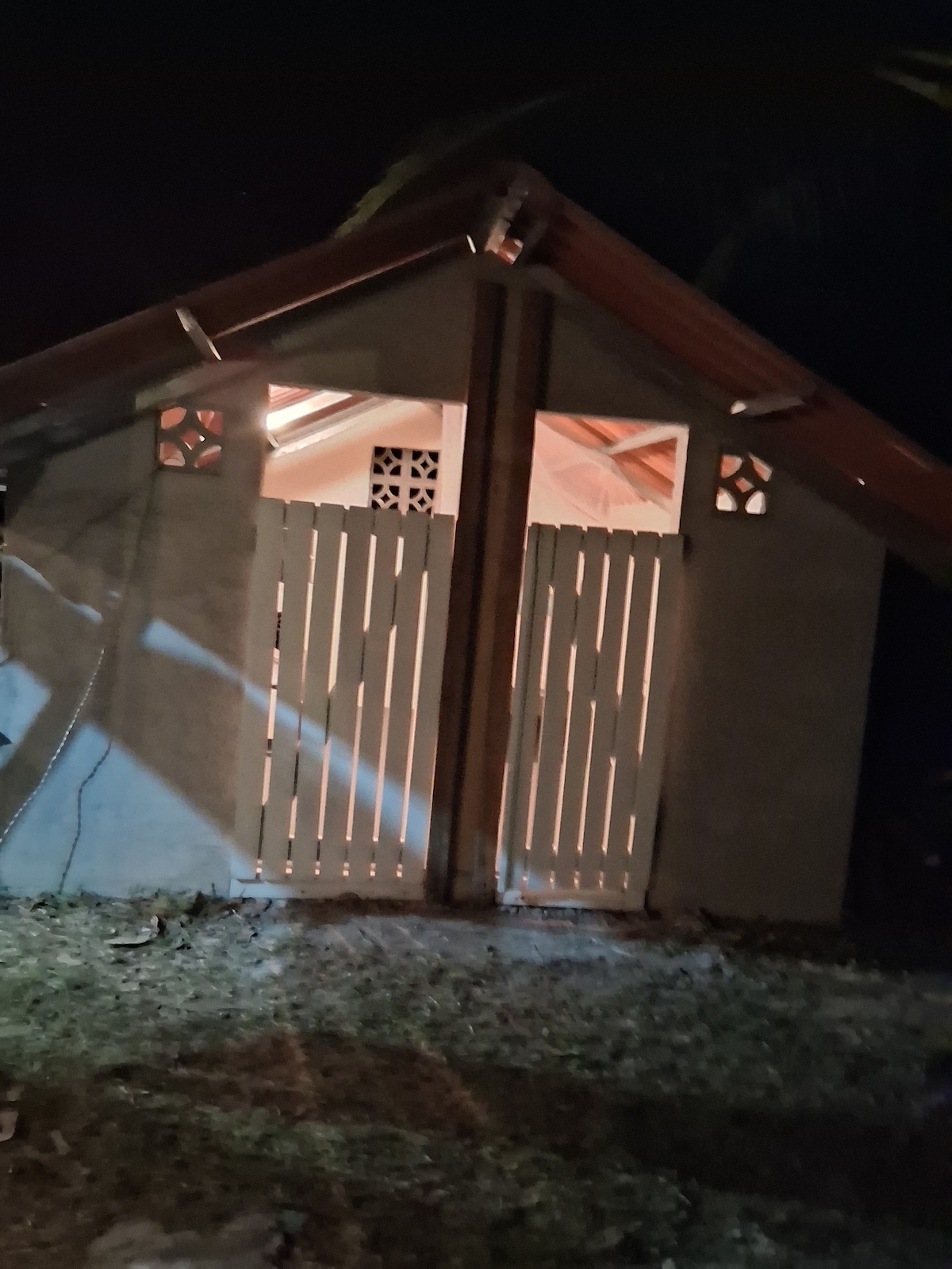 It is a cozy one-bedroom unit, with a closet, a bathroom with separated toilet area, a porch and a rancho. Nestled amidst the serene hills of Canas, the property offers a tranquil retreat with a picturesque ocean view. Wake up to the enchanting melodies of howler monkeys and local birds, immersing yourself in the beauty of nature every morning. While the cabana doesn’t have its own kitchenette, fret not! You’ll have access to a nearby fully equipped community kitchen, shared between 2-3 people.