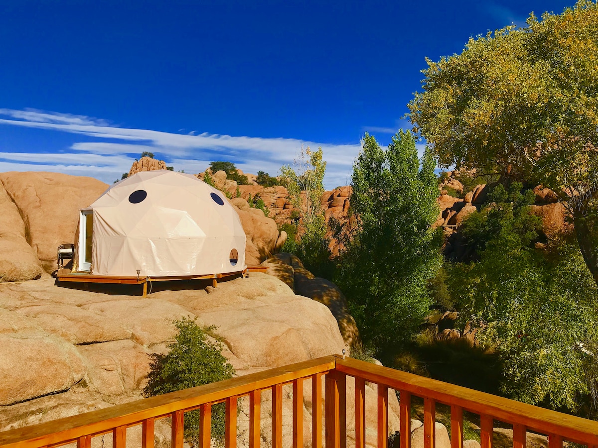 Gaze at a million stars, comet showers, or the full moon in this magical Dome, just 25mins from Sedona. Sleep under the stars on a comfy bed right in the Dome, or in nearby "Garden Shed". Relax in the patios surrounding this hidden desert paradise. Access nearby trails & ruins. Less than 2-mile hike to breathtaking views of the confluence of the Verde River & Oak Creek. Five miles to Cottonwood, gas & shops. Close to vineyards, & so much more! No chores at check-out! Just enjoy your vacation!