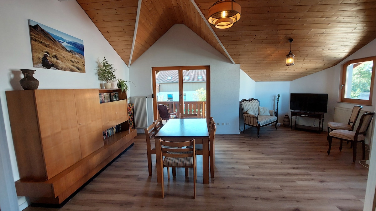 Este apartamento completamente renovado se encuentra en excelentes condiciones y se extiende por el entresuelo de una casa de campo construida en la década de 1930, que ha sido restaurada con gran atención al detalle. Todo el apartamento, con su ambiente individual, está a su entera disposición. ¡Aquí se puede respirar tranquilamente! La casa de campo se encuentra casi en una ubicación aislada (un vecino directo), rodeada de prados y bosques en el hermoso Ostallgäu.