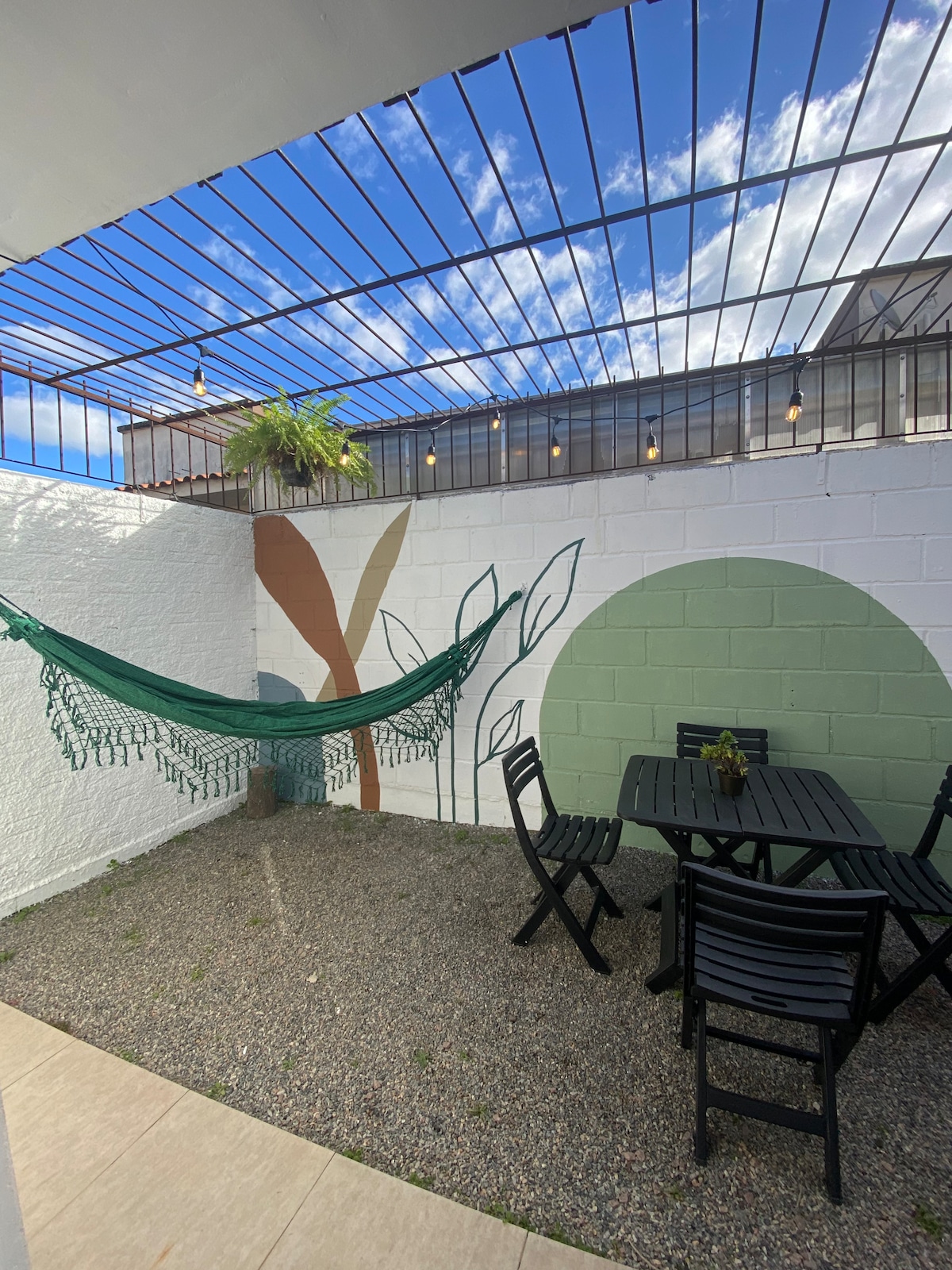 El edificio INN, un encuentro de parque y alma, permite al huésped disfrutar de todas las comodidades y seguridad del Parque Una, ¡y tener una mayor conexión con la naturaleza! El ROOFTOP (zona común del edificio INN) está (puerta con puerta) con nuestro loft, brindando al huésped no solo momentos de ocio inolvidables, ¡sino que también termina convirtiéndose en una extensión del apartamento! El apartamento tiene una vista impresionante de la mesa del comedor.