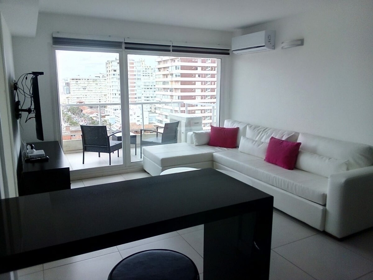 Apartamento de un dormitorio a metros de Playa Mansa y frente al Hotel Enjoy. Muy luminoso, con linda vista a la Playa mansa y todas las comodidades. Wifi , TV Cable, Servicio de mucama diario. Garage propio y lavadero. Muy lindo decorado y completamente equipado. TVs y aire acondicionado en los 2 ambientes. El edificio tiene seguridad 24 hs y cuenta con amenities de calidad: piscina exterior climatizada, gimnasio, sauna, barbacoa con amplia terraza con vistas a la Bahia. Próximo a Gorlero