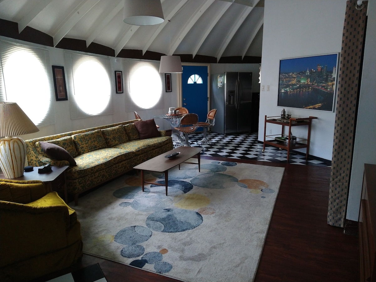 ¡Te damos la bienvenida a la cúpula Downstream! Nuestra cúpula geodésica de nueva construcción te permite despertarte con una vista única del hermoso río Allegheny, todo mientras te sientes enclavado en la naturaleza. La cúpula incluye una cama tamaño queen, un baño, comedor, cocina completa, área de patio al aire libre con jacuzzi, parrilla y fogata. Por la salud y la seguridad de todos, tenemos una política muy estricta de no animales. Gracias.