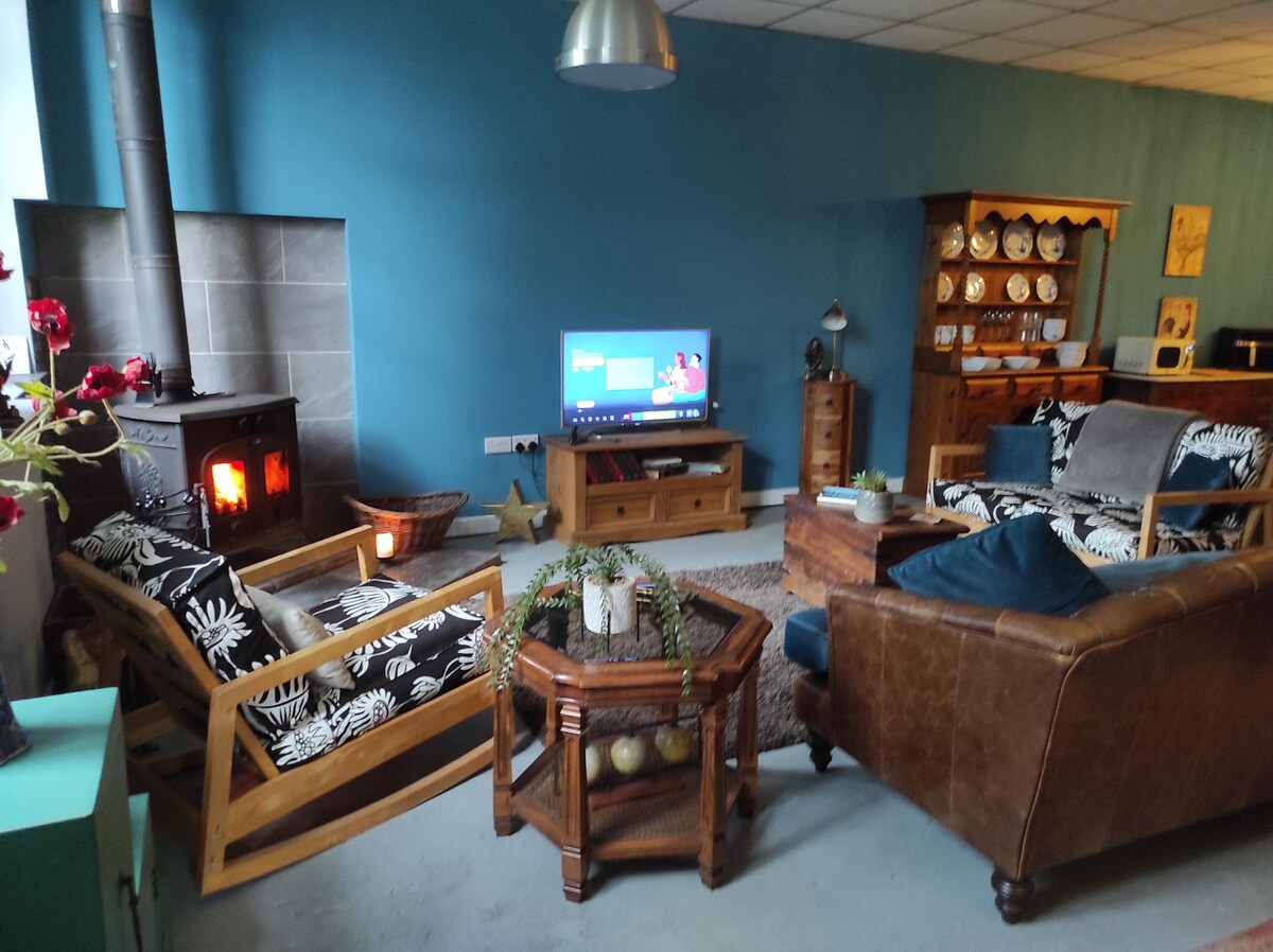 Relájate en la campiña del oeste de Gales en la pequeña casa de campo. Es una mezcla elegante de lujo de alta gama y características del viejo mundo, todo envuelto en un acogedor paquete de piedra. Como huéspedes disfrutaréis de vuestra propia bañera de hidromasaje privada, la estufa de leña, la cocina totalmente equipada, la gran televisión inteligente, buena conexión wifi, el comedor, el jardín privado con barbacoa, el baño y el gran dormitorio tipo loft con cama extragrande. ¡Todo esto a 20 minutos en coche de una selección de increíbles playas del oeste de Gales!
