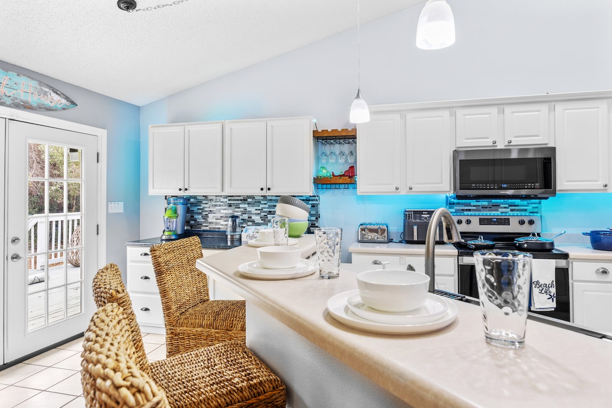 Este alquiler vacacional costero familiar ubicado en el “lado del sonido” a pocos pasos de la arena y el agua, ofrece acceso tranquilo al frente del agua, un gran patio trasero y comodidades premium incluidas como tablas de paddle, kayaks, bicicletas, nevera, sillas de playa, toallas, manta, cañas de pescar, parrilla para barbacoa. A poca distancia de restaurantes, bares de playa, camiones de comida y parques, con Navarre Beach y el muelle más largo a minutos de distancia. Disfruta de impresionantes vistas, amaneceres, atardeceres y frecuentes avistamientos de delfines.
