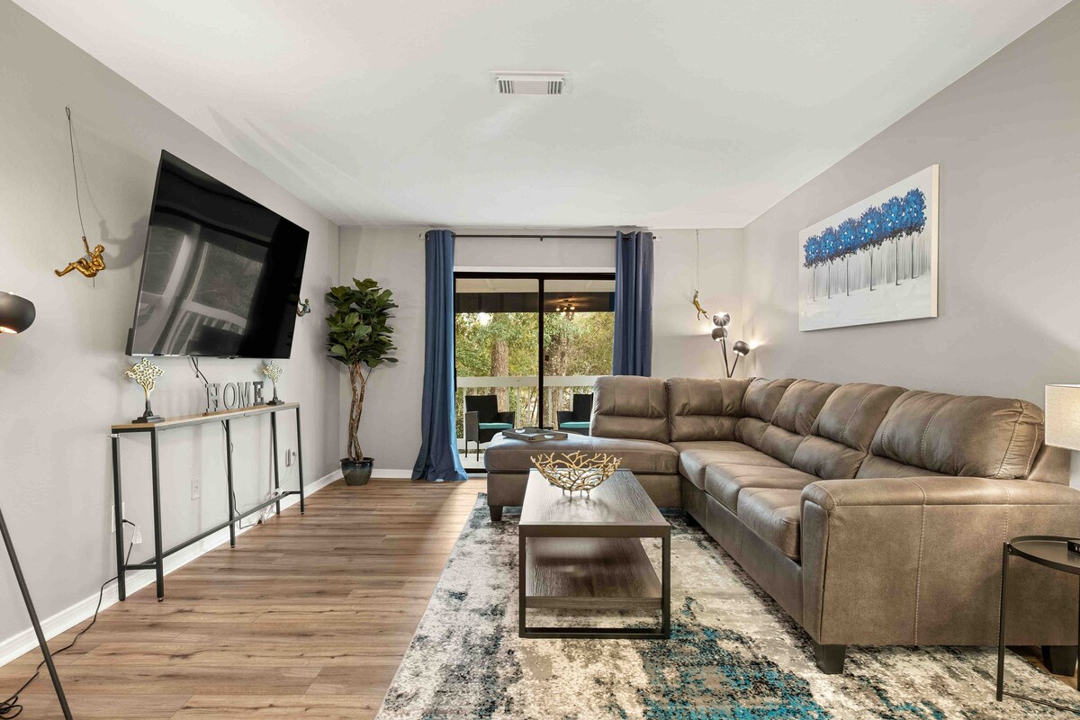 El condominio Salt Shack se encuentra dentro del Purple Parrot Village Resort, que está a aproximadamente 1/2 milla de la playa de arena blanca de Perdido Key. ¡La terraza trasera del apartamento de arriba tiene vistas a la piscina/jacuzzi al aire libre estilo resort! Esta casa vacacional tiene una cama tamaño king en el dormitorio y un juego de literas empotradas en la sala de estar que le permite dormir hasta 4 huéspedes. Otros servicios incluyen una piscina cubierta climatizada/jacuzzi, gimnasio y saunas.