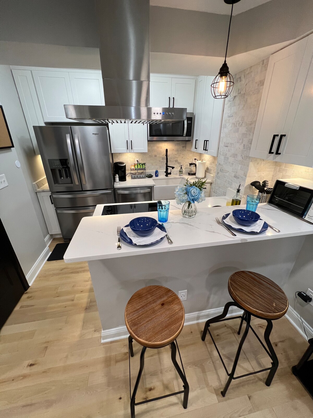 ¡Alójate en mi apartamento de 1 dormitorio recién reformado en el corazón de DC! Este hermoso barrio residencial está rodeado de tres estaciones de metro y es céntrico para muchas de las principales atracciones de DC. El apartamento está a muy poca distancia a pie (3 manzanas) del Centro de Convenciones y CityCenterDC, lo que hace que tu estancia sea fácilmente accesible ya sea que estés en el Distrito por negocios o placer. Velocidad de internet mejorada de hasta 1000 MBPS adecuada para múltiples dispositivos. ¡La puntuación a pie es de unos INCREÍBLES 98!