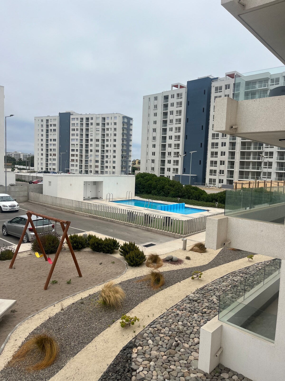 Disfruta de una rica estadía frente al mar, con bellos atardeceres, una vista hacia toda la costa y todas las comodidades necesarias. Cuenta con piscina, quinchos y gimnasio. A pasos de la playa si quieres renovarte de energías. Muy cerca de restaurantes.