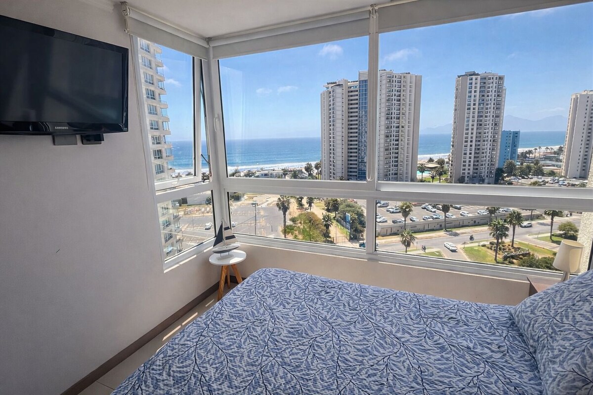 Escapate frente al mar con tu familia. En cualquier época del año, sientete como si estuvieras en tu hogar. Atardeceres desde la terraza, donde se ve toda la bahía de coquimbo y la serena. En las noches cielos despejados y estrellados, respirando el aire marino. Todo esto frente del mar, piso 19, para 5 personas. A un costado del casino Enjoy. piscina al aire libre y vista al infinito. Kinchos Con vista panoramica. Estacionamiento gratis. Saliendo del condominio avenida costanera
