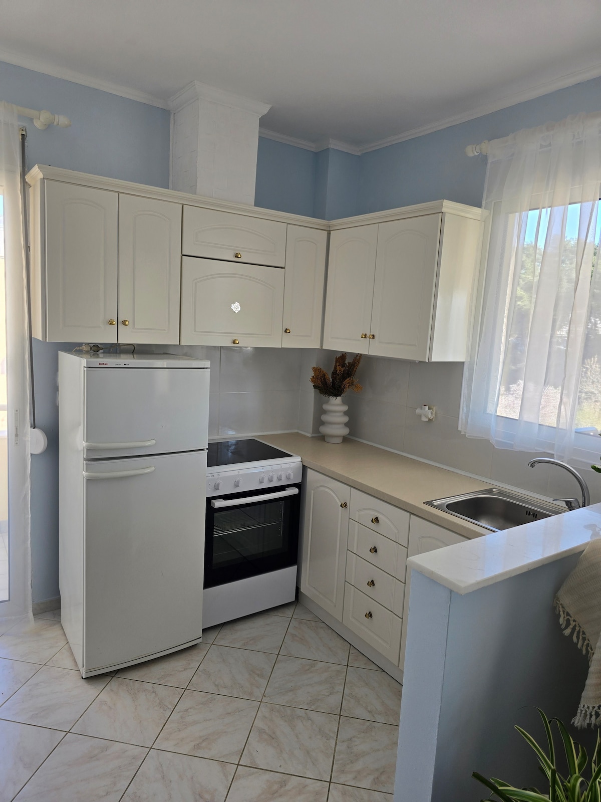 If you want a spacious and calm semi basement apartment at the center of peraia I recommend my home with it's own private garden . It's near the airport that you can Access with just a bus ride and near all shops that you will need.We are 5 minutes away from the beach and close to lots of restaurants.This is a new account but we are experienced super hosts of 8 years.If you want you have access to beautiful xalkidiki with just 1 hour car drive and very easy access to Thessaloniki.