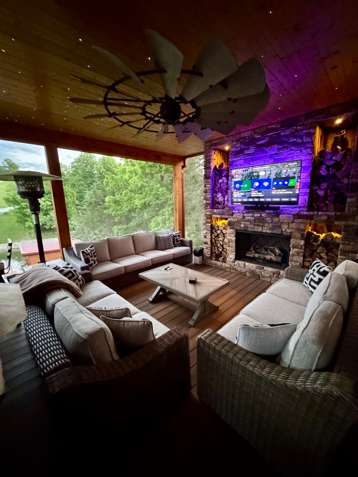 Desde el burbujeante jacuzzi, disfruta del aire del campo y la tranquilidad en esta impresionante cabaña de 48 acres (completamente privada) de dos dormitorios y dos baños ubicada entre el Arca y el Museo de la Creación. Disfruta de una taza de café o una copa de vino alrededor del majestuoso fogón con vistas a las ondulantes praderas. Disfruta de estanques prístinos (con fuentes LED) para pescar y nadar. Observa a los ciervos y pavos recorrer la propiedad. Camina por los senderos que incluyen un campo de golf de disco volador diseñado para contemplar el paisaje.