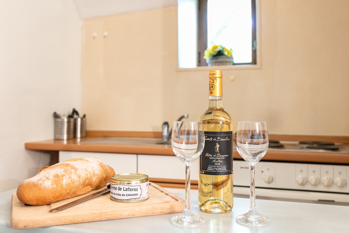 ¿Una pequeña estancia en el castillo? Anaïs y Bastien le proponen alojarse en el ala este de la casa, que domina sus 15 hectáreas de viñedos orgánicos. Con total independencia, tiene un estacionamiento y un (gran) pedazo de jardín arbolado [2000 m²]. La vista sobre el Garona y los alrededores es increíble. Los viñedos de la propiedad se llevan a cabo en agricultura ecológica.