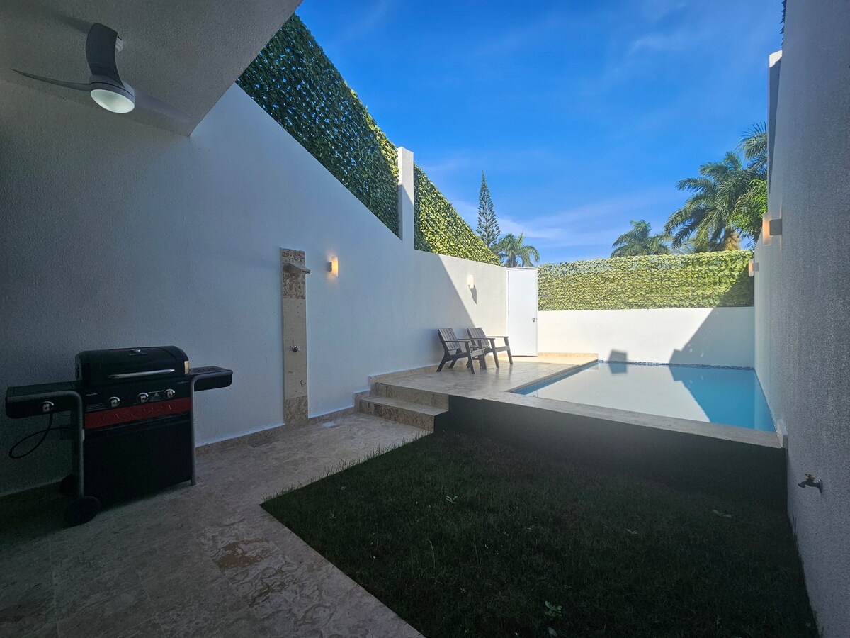 Esta moderna villa se encuentra en una comunidad cerrada a 5 minutos a pie de la playa y del Natura Cabana Resort. En las inmediaciones hay disponibles servicios de spa, masajes y clases de yoga. La villa tiene 3 dormitorios, cada uno con baño privado. La suite de los propietarios del segundo piso tiene 2 balcones para tomar aire fresco. La piscina de aguas cristalinas es el lugar perfecto para nadar o relajarse en una de las tumbonas junto a la piscina. Dentro de la comunidad peatonal encontrarás restaurantes, bares y un mercado boutique. La comunidad cuenta con seguridad las 24 horas.