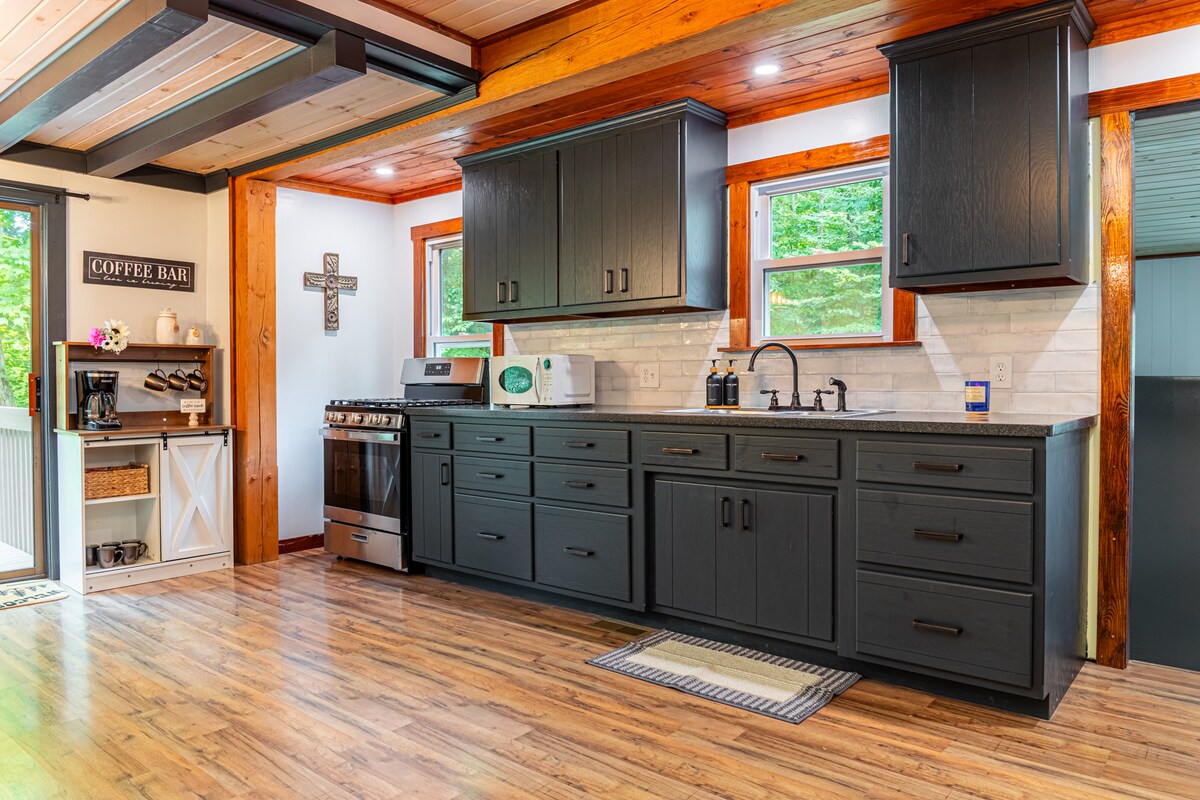 BRAND NEW 2021!! Come enjoy a quiet, relaxing retreat in our spacious, bright chalet, beside a rippling creek. Spend time indoors, cooking delicious meals in our fully stocked kitchen, resting near the cozy electric fireplace, reading books or streaming your favorite entertainment. Get competitive with a game of ping pong, "hang out" in hammocks, indoors or out, build a blazing bonfire or splash in the creek! Fire up the grill, relax in the 6 person hot tub, or swing on the front porch.