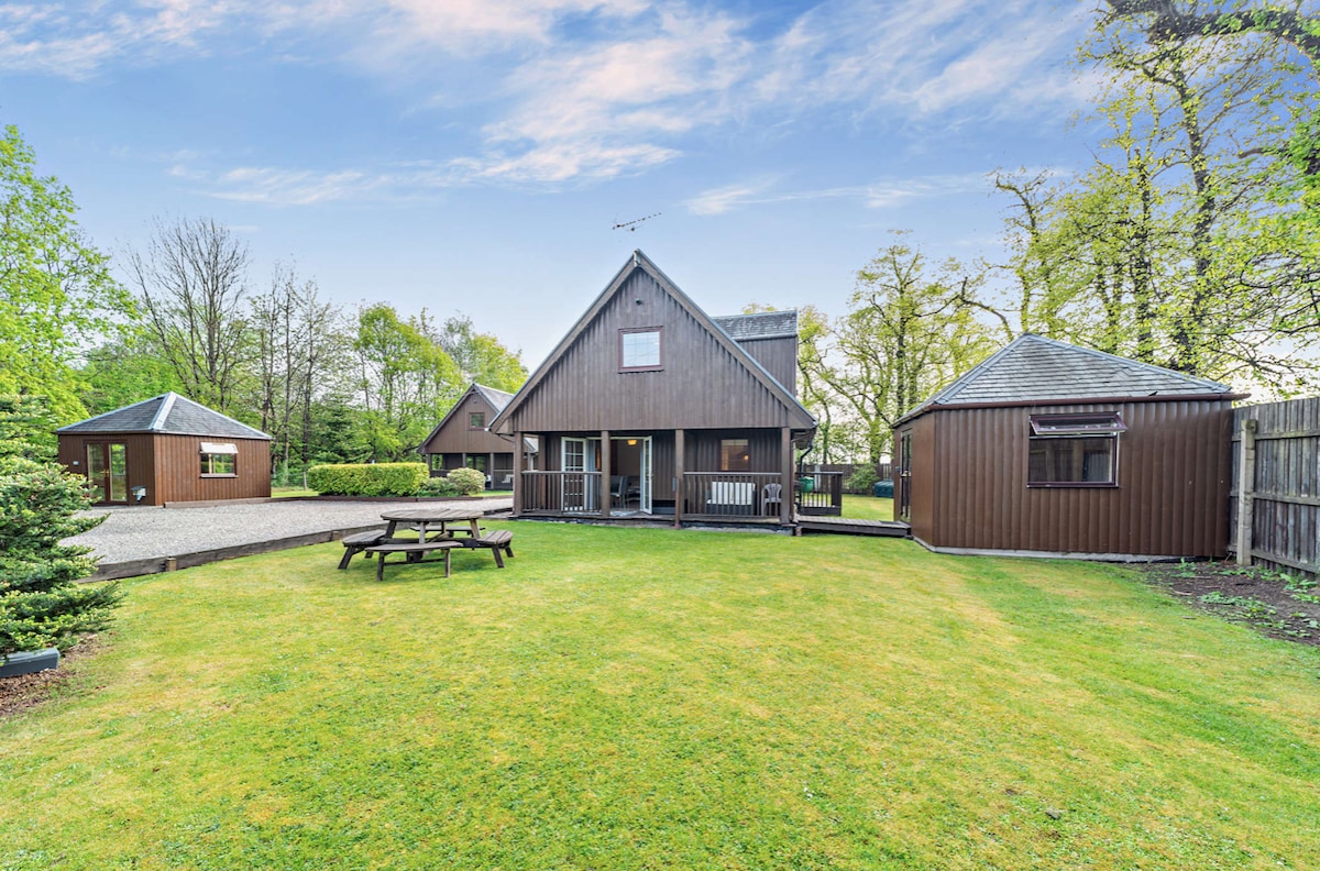 Cabaña de madera en Strathyre disponible semanalmente. Cabaña de madera de estilo suizo con 4 literas en el Parque Nacional (1 doble y segundo dormitorio con 2 individuales). Estufa de leña. Alarmas completas de incendio y monóxido de carbono. Encantador pueblo con oficina de correos, tienda y pub, todo a 3 minutos a pie. Maravillosos paseos por el bosque y río de pesca literalmente a 10 metros de la cabaña. Se admite un perro, no se admiten fumadores. Wifi de fibra rápida, pero conexiones móviles deficientes dentro de la cabaña; sin embargo, funciona bien en el pueblo.