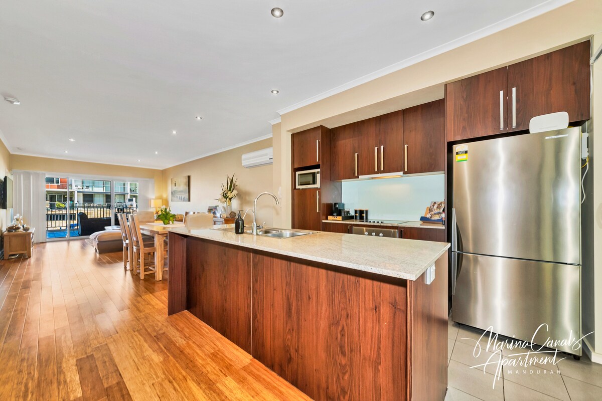Marina Canals Apartment es una elegante casa frente al mar situada en la planta baja, en el puerto sur del galardonado puerto deportivo internacional Mandurah Ocean Marina. Acércate a los delfines. Relájate y disfruta de las puestas de sol. Enciende la barbacoa y mira pasar los barcos. El restaurante Jetty con vistas al puerto deportivo está justo en la puerta. Da un paseo hasta el paseo marítimo, la costa y el centro de la ciudad. ¡Alójate en el centro de todo lo que ofrece Mandurah!