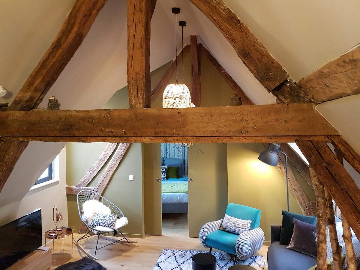 Le Cotin Bleu 💙 Duplex de prestige – Confort hôtelier – 80m² 5★ – Place du Vieux-Marché – Centre historique Rouen – 6 pers Emplacement exceptionnel à deux pas de la Cathédrale et du Gros-Horloge. Séjournez dans un duplex de charme niché dans un immeuble à colombages du XVe siècle, alliant histoire et confort contemporain. Restaurants, sites culturels, boutiques et bars au pied de l’immeuble — tout se fait à pied, au calme. Idéal pour un séjour raffiné et élégant.