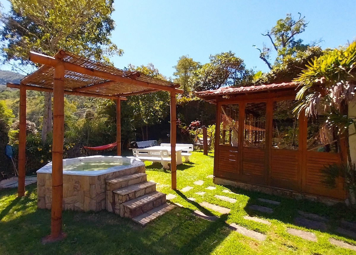 Casa de campo aconchegante, localizada a 1.200 m de altitude, distando 9 km do centro de Araras e 6 km do Vale das Videiras, Petrópolis. Rua sem saída, com poucos vizinhos e iluminação pública, cercada de mata exuberante e muito silêncio. Salas de estar e refeição espaçosas, lareira, cozinha tipo americana, três quartos sendo uma suite e 1 banheiro social. Aquecimento de água a gás nos banheiros e cozinha. Piscina e churrasqueira num terreno com área total de 1.400 m2. Estacionamento e portão.