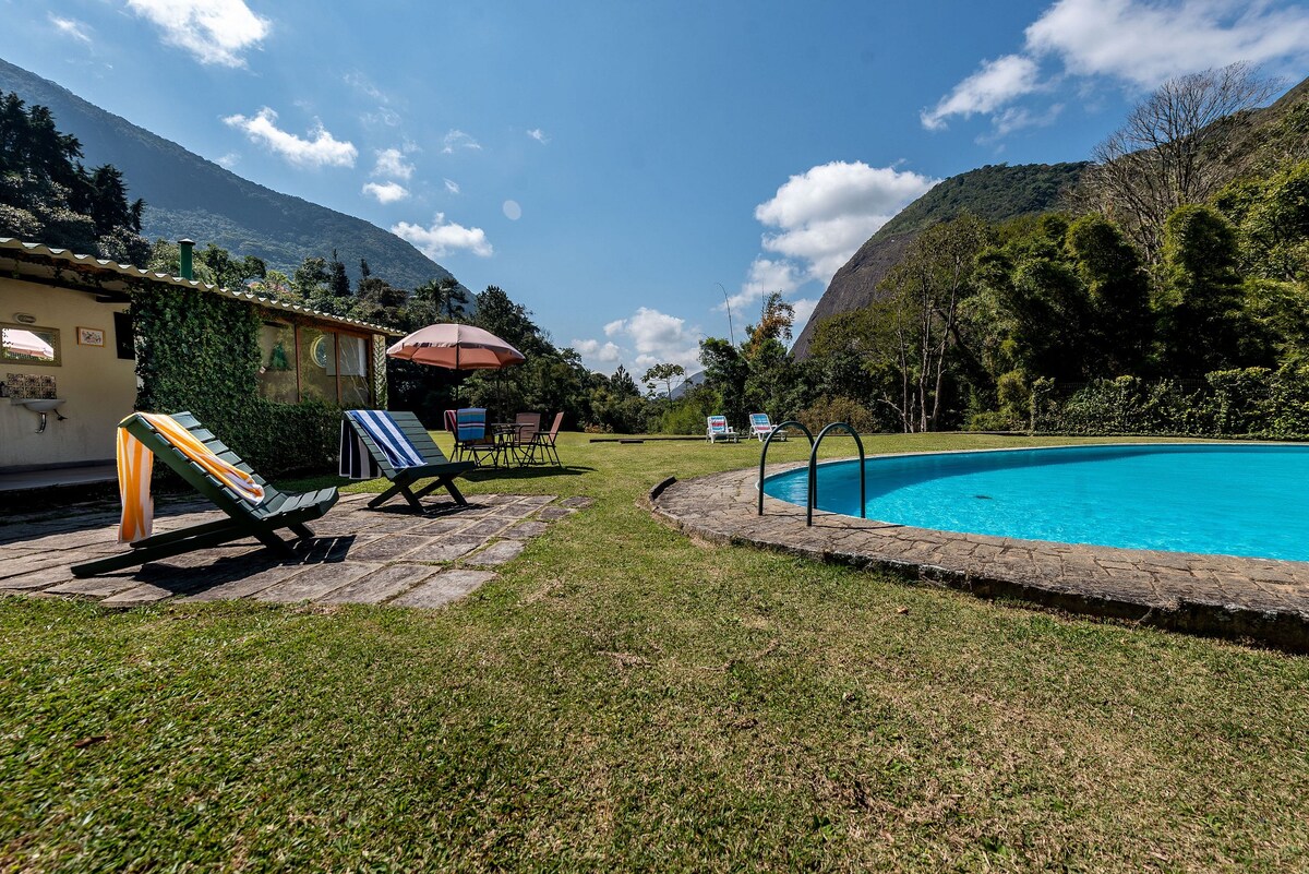 Situado a aproximadamente 1 hora y 20 minutos de Río de Janeiro, este paraíso privado cuenta con capacidad para 8 huéspedes en 4 dormitorios. La casa cuenta con 8.000 metros de césped, piscina, zona de barbacoa, sauna, chimenea y pozo de fuego al aire libre. É necessária a contratação de 01 (um) empregado e 01 (um) cuidador, com um custo de R$225 por dia para até 08 pessoas. La tarifa diaria del cuidador se calcula por días naturales trabajados, no por noches.