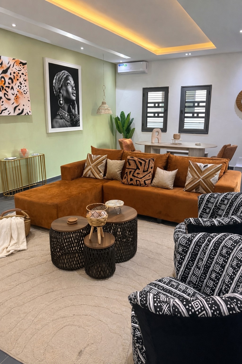 Welcome to your designer retreat in the heart of Almadies. This home blends modern comfort, bold artistic design, and spacious living, creating the perfect stay for travelers. • 2 beautifully designed bedrooms • 4 modern bathrooms • Large open living area with designer decor • Fully equipped kitchen • Private balcony with outdoor table and seating • Access to a rooftop with monument views Located just 7 minutes from the beach, you’ll enjoy easy access to restaurants, cafes and nightlife.