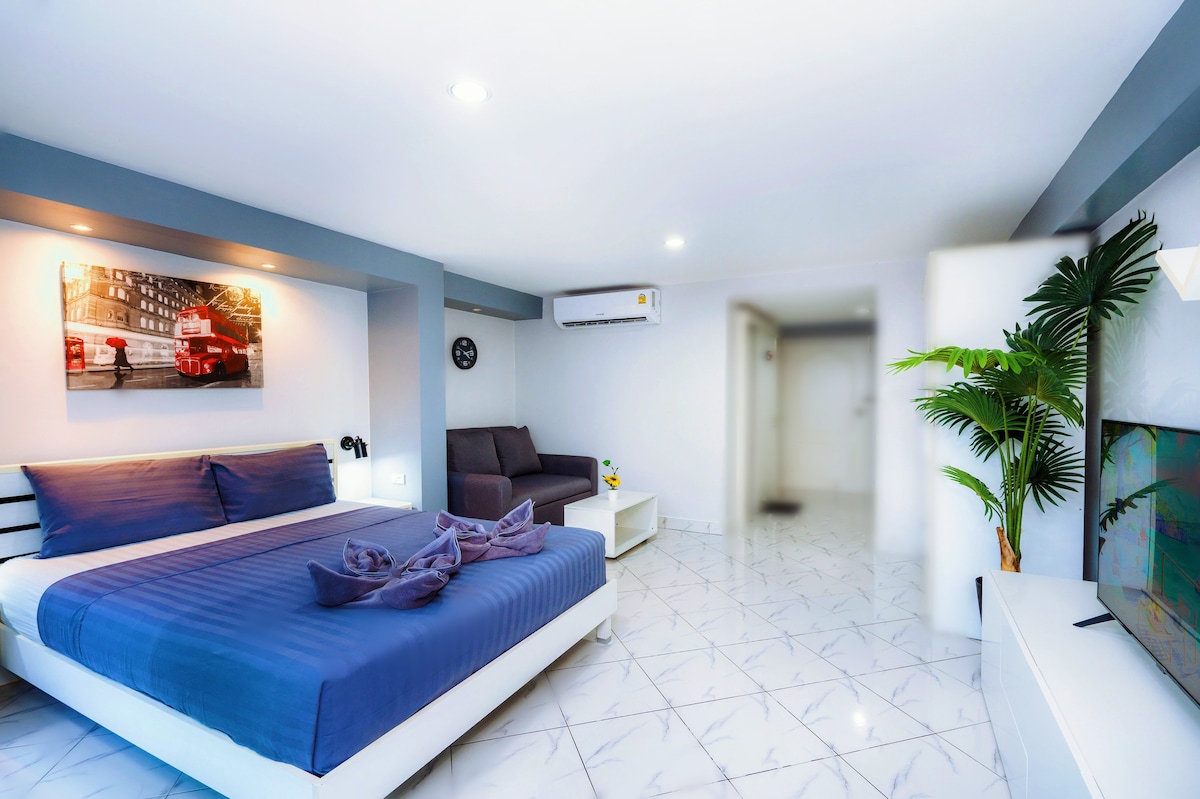 Disfruta de tu estancia en un apartamento limpio y moderno con servicios en la planta 16, que cuenta con Ubicación perfecta, cerca de buenos restaurantes, excelentes vistas desde el balcón en el piso 16, 1 dormitorio, microondas, sala de estar y acceso a la piscina, gimnasio, sauna/baño turco y sala de juegos/cancha de tenis, ¡todo lo que necesitas para una escapada encantadora en un entorno limpio y moderno! Se proporciona wifi estable de cortesía. Puedes recoger una tarjeta de acceso wifi en el vestíbulo para usarla en la habitación.