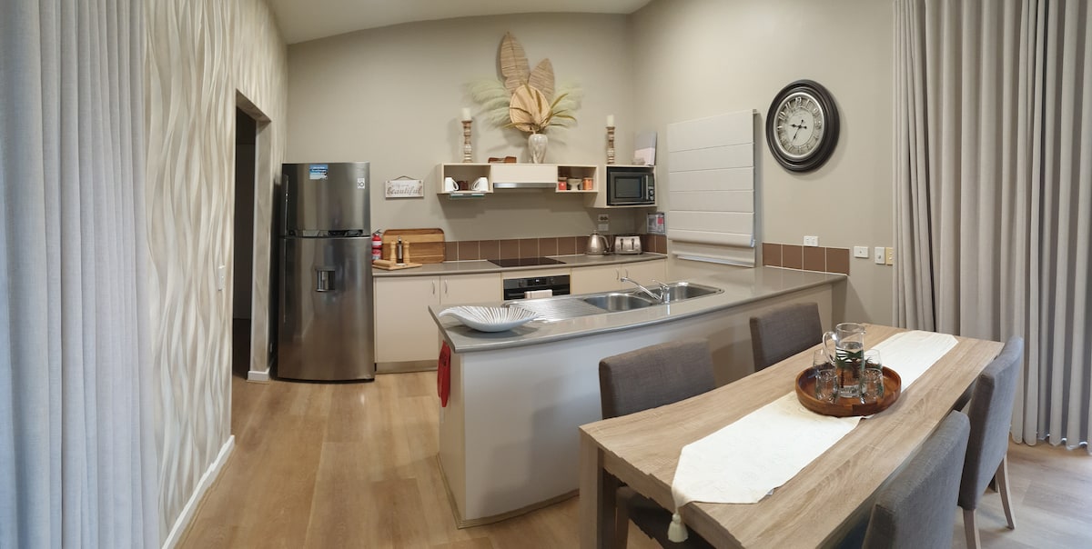 Relájate con la familia en la tranquila Isla Villa, ubicada en el complejo Ramada mejor valorado de Phillip Island. La villa recientemente renovada cuenta con 3 dormitorios con camas tamaño queen, 2 baños, salón de planta abierta luminoso y soleado, comedor y cocina, lavandería totalmente equipada y 2 salas de estar al aire libre. La terraza aislada más grande/orientada al norte proporciona el lugar perfecto para reunirse y disfrutar de una comida con familiares y amigos. Los huéspedes pueden utilizar gratuitamente todas las instalaciones del centro vacacional: piscinas, gimnasio, tenis y cargadores de vehículos eléctricos gratuitos.