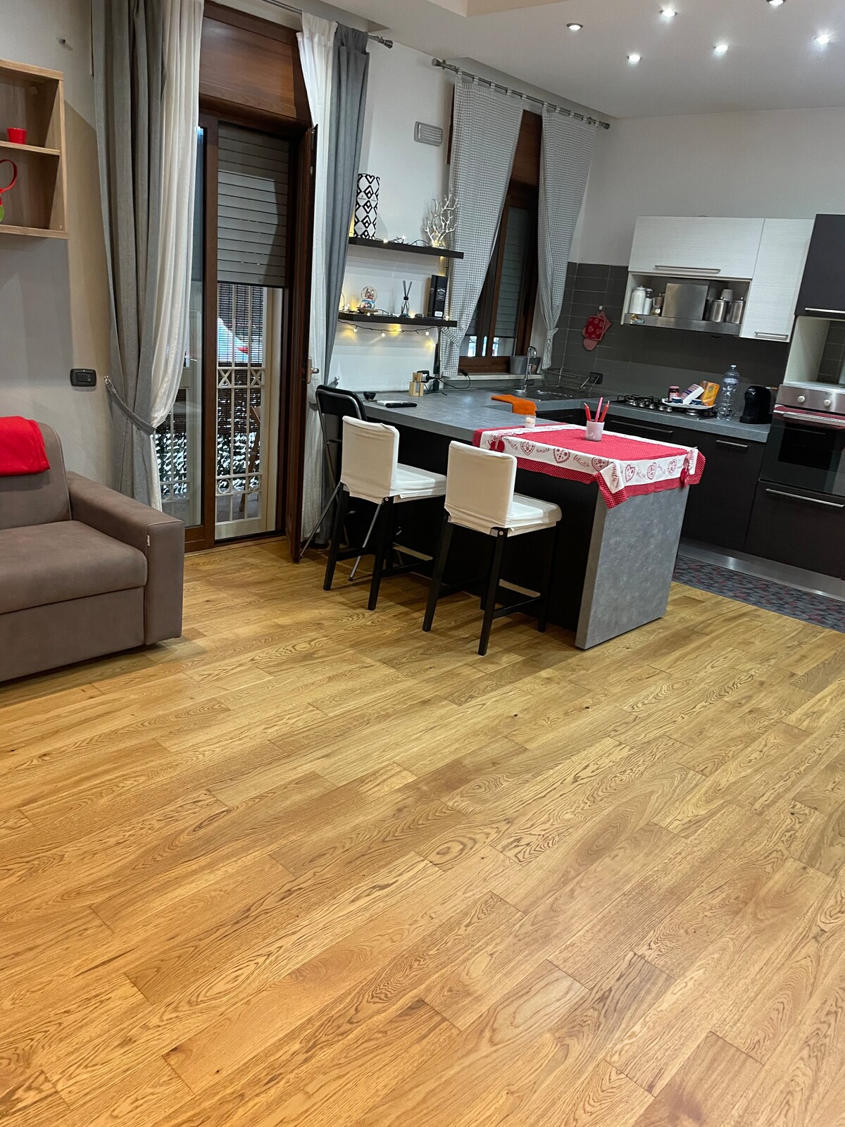 Este departamento está ubicado en la parte superior de un edificio histórico en la calle peatonal principal del centro de la ciudad. La calle está llena de gente, pero el apartamento es muy tranquilo con su terraza común. Terraza común con dos apartamentos más. Suministramos toallas y sábanas de hotel, champú, espuma de baño, jabón de manos, papel higiénico, secador de pelo, vajilla, aceite de oliva virgen extra, sal, azúcar, café, papel de cocina, etc.