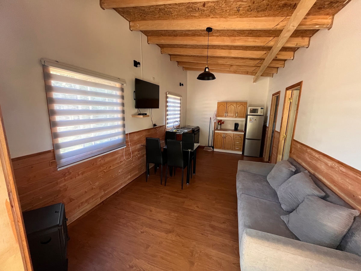 Cabaña de lujo tipo loft con finas terminaciones, inserta en un bosque centenario de arboles nativos. Baño en suite, walking closet, cocina integrada completamente equipada. Combustión a leña, estufa toyotomi. Gran terraza, parrilla, mesa en el bosque para asados, piscina, estacionamiento privado, smart tv, netflix, tv cable y wifi fibra optica.