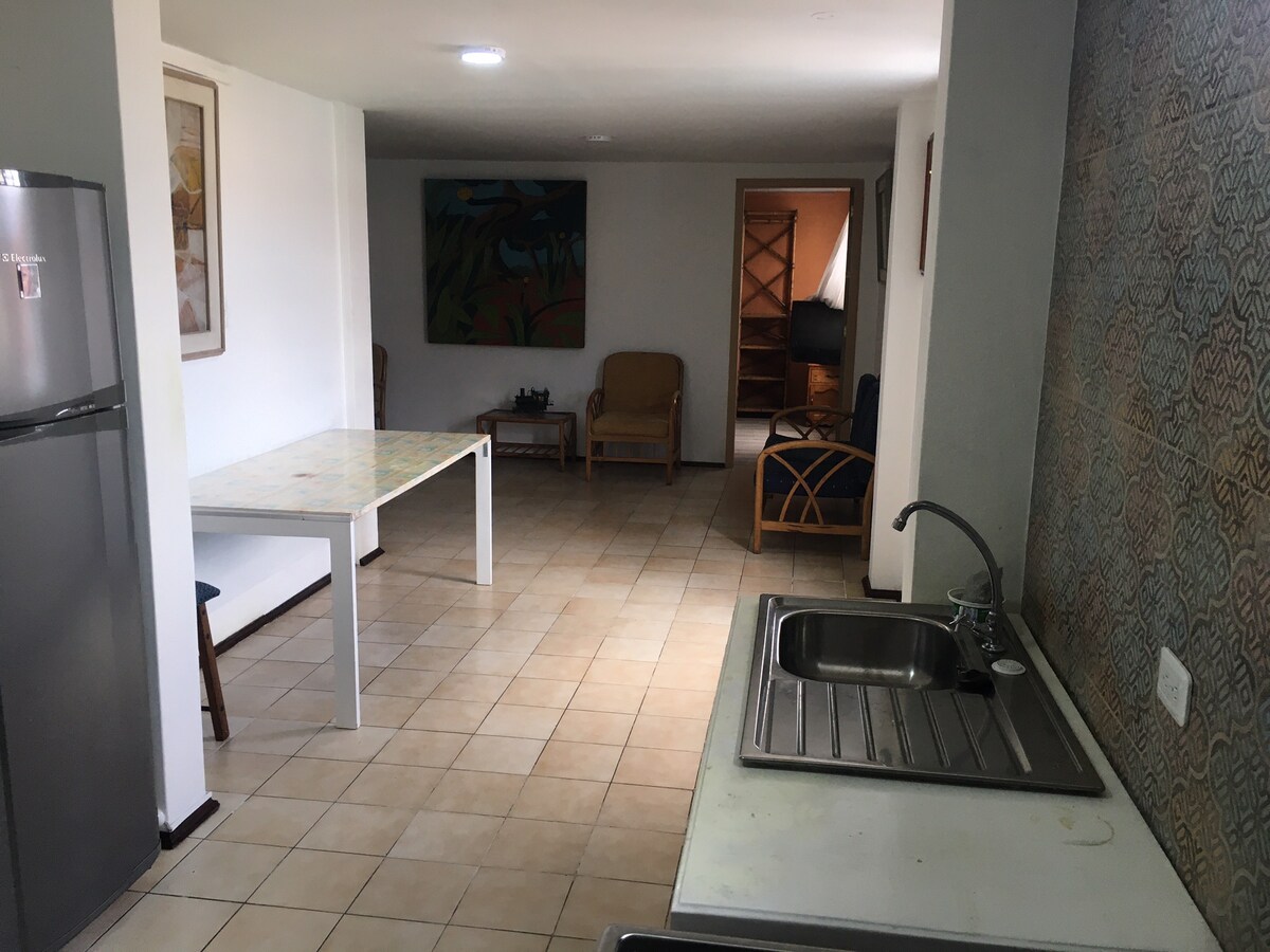 Apartment in one of the best neighborhoods in Quito (Carolina). 1 minute walking to the Metro station. Walking distance to Carolina Park. Queen size bed, full size sleeper sofa, equipped with kitchen, fridge, microwave, laundry area, 1 parking lot, 24 h. security surveillance.