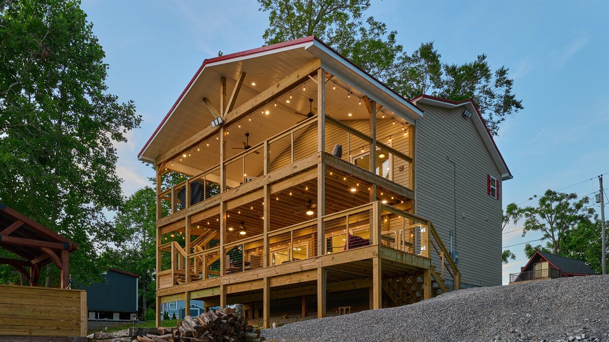 * Cabaña frente al lago con vistas al lago. * Kayaks gratuitos: Kayak n.º 1: kayak oceánico doble de asiento superior. Kayak n.º 2: kayak individual Pescador. * Lanzar los kayaks desde la parte inferior de nuestra cresta. * Para barcos: la rampa para barcos está a 1/4 de milla en Riverton Rd. * Chimenea de leña al aire libre en la cubierta abierta. Disfruta de una de las 3 cubiertas. Interior: * 3 camas tamaño queen, 1 baño, aire acondicionado central y calefacción, ropa de cama y toallas limpias, cocina equipada. * Excelente wifi en la cabaña, pero el servicio de telefonía móvil es irregular. Utiliza las llamadas por wifi.