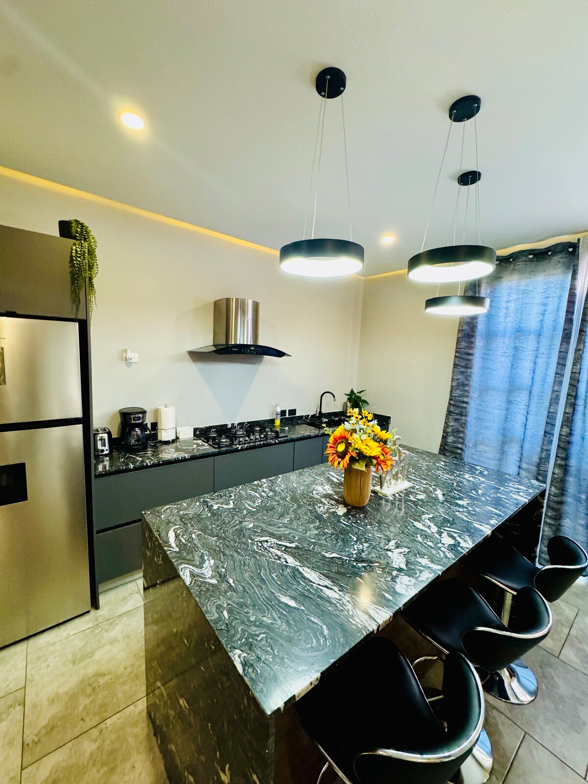 Esta espaciosa casa adosada moderna de dos pisos tiene una ubicación céntrica y, lo más importante, está diseñada para proporcionar una estancia tranquila a nuestros huéspedes. La casa es perfecta para familias, parejas o amigos que buscan alojarse en un entorno limpio, espacioso y cómodo. Independientemente del propósito de tu viaje, puedes disfrutar de una comida al aire libre en el patio trasero privado o tener una noche de cine y jugar juegos de mesa en la espaciosa sala de estar con techos altos.