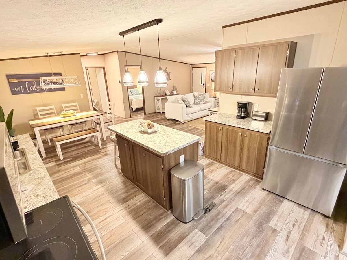 Trae tu equipo de pesca o tu pequeño barco para disfrutar de una divertida escapada en la casa del capitán con un muelle en el lago Stella. La entrada sin llave te permite realizar el registro de entrada de forma autónoma y te da la bienvenida a este cómodo y limpio espacio de 962 pies cuadrados con dos camas tamaño queen, un baño, cocina completa, sala de Florida y un patio trasero vallado. Se proporciona un bote de remos. ¡También hay tres kayaks y dos bicicletas disponibles! ¡O puedes traer tu barco e ir a pescar! Disfruta nadando, de preciosas puestas de sol y paseos por el hermoso lago.