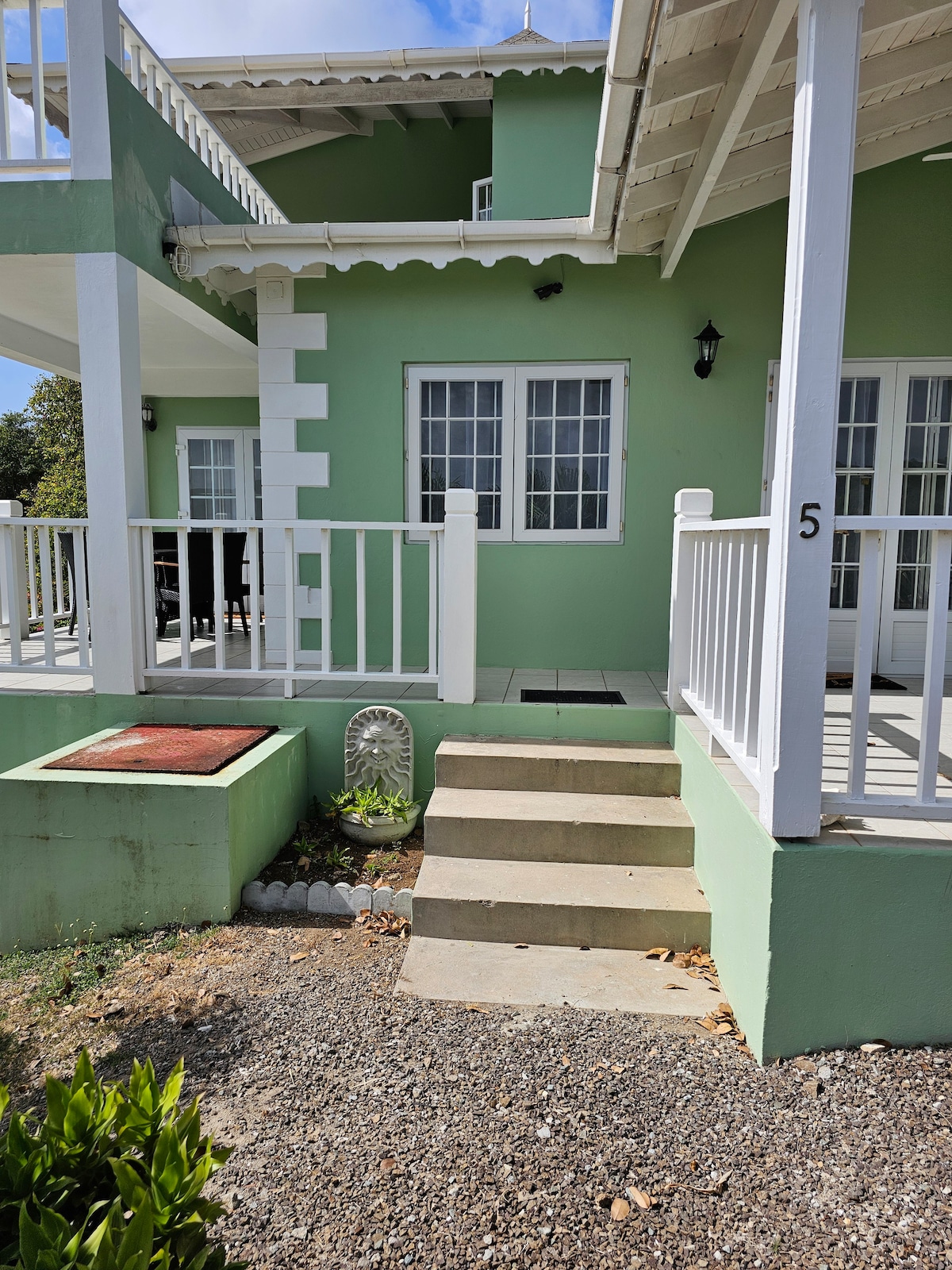 Una elegante casa de campo estudio con aire acondicionado de nueva construcción. Cocina completa, increíble baño con ducha semi abierto y cama tamaño KING que se puede separar en DOS camas INDIVIDUALES/DOBLES. Ubicado en un exuberante jardín con varios árboles de frutales tropicales y hierbas que puedes recoger y flores y un follaje espectacular para disfrutar. ¡Hermosas vistas de las puestas de sol y el mar Caribe! Cerca de la zona comercial y de entretenimiento de Rodney Bay y del estadio Daren Sammy Cricket Ground, así como de 2 campos de golf, paseos a caballo y sitios históricos.