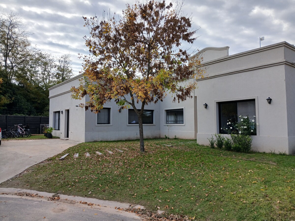 Casa en barrio privado inaugurada en marzo de 2022, diseño único mid-century modern. Amplia, funcional y acogedora. Aire frío/calor en todos los ambientes. Calefacción por losa radiante. Gran parrilla, anafe y horno eléctricos, artefactos de 1ra, aberturas doble vidrio y galería con los mejores atardeceres por su orientación Noroeste. Jardin con salida a amplia laguna. Cama California king en suite. Colchones de 1ra. Wifi alta velocidad. ::No se permiten eventos, mascotas o invitados extra