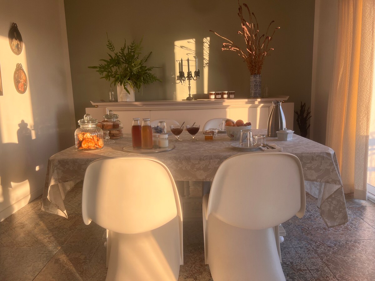 La bella Girondine está encantada de darle la bienvenida a su casa de campo contigua (40 m2), situada en el corazón de los viñedos, con sus actividades vitícolas, a solo 1,5 km del centro de Saint-Émilion y ofrece aparcamiento y aparcamiento para bicicletas. Franco británico, Jany y su hija Felicia estarán encantados de darle la bienvenida y aconsejarle sobre los lugares de interés que debe visitar. Le ofrecemos un desayuno clásico o continental incluido en la tarifa de la noche. Wifi/TV disponible