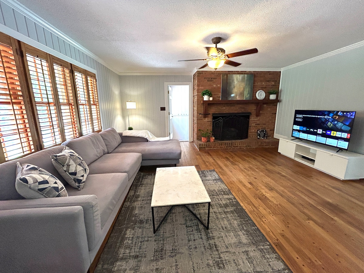 ¡Experimenta todo lo que Fort Mill tiene para ofrecer! ¡Caminando llegas a restaurantes y bares por la vía verde! Escápate a la pintoresca puerta amarilla de Cape Cod rodeada de hermosos robles en una calle sin salida con una cochera para dos coches. Este alojamiento de 3 dormitorios y 2 baños y aseo, totalmente renovado, está limpio, es acogedor y ofrece servicios de alta gama como suelos de baño con calefacción, electrodomésticos de primera calidad y wifi rápido. ¡Disfruta de tu café en el porche delantero con mecedora o de tu vino en el patio trasero junto al fuego en el enorme patio privado! ¡Relájate y desconecta!