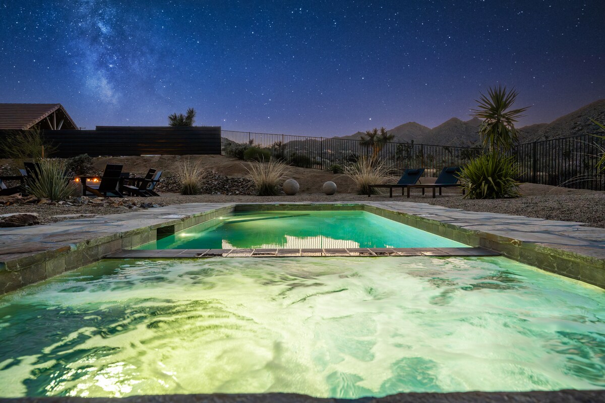 Casa con piscina bajo el sol de medianoche Joshua Tree