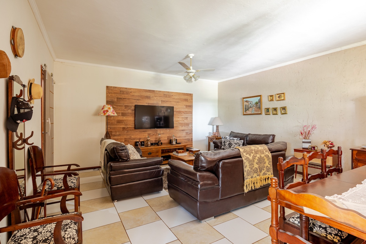¡Relájate con la familia en nuestro pequeño pedazo de cielo! 🌅 Recién renovado, con piscina, redes, columpios, vistas a la montaña, huerto, estacionamiento, zona gourmet, barbacoa, chimeneas, calefacción al aire libre, casa plana, seguridad las 24 horas, Televisores inteligentes, wifi y juegos familiares. A solo 500 metros del parque acuático Thermas, a 100 metros de Haras Bela Vista y a 5 minutos de Águas de São Pedro. Ofrecemos almohadas, sábanas elásticas y fundas de luz. Todos los utensilios y utensilios de barbacoa.