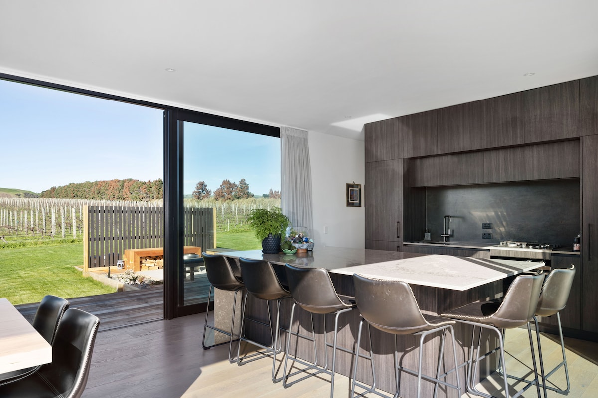 Disfruta de una estancia en nuestro viñedo de Martinborough. La casa está enclavada entre las vides y ofrece un refugio tranquilo de la ciudad. Estamos a 8 kilómetros del centro de Martinborough en dirección sur, de camino a Lake Ferry. Puedes disfrutar de una tranquila cata de vinos en nuestra bodega con David, que siempre está encantado de hablar de vino. También te transportaremos a Martinborough para que puedas pasar el día investigando las bodegas locales o cenar en uno de los buenos restaurantes de la ciudad.