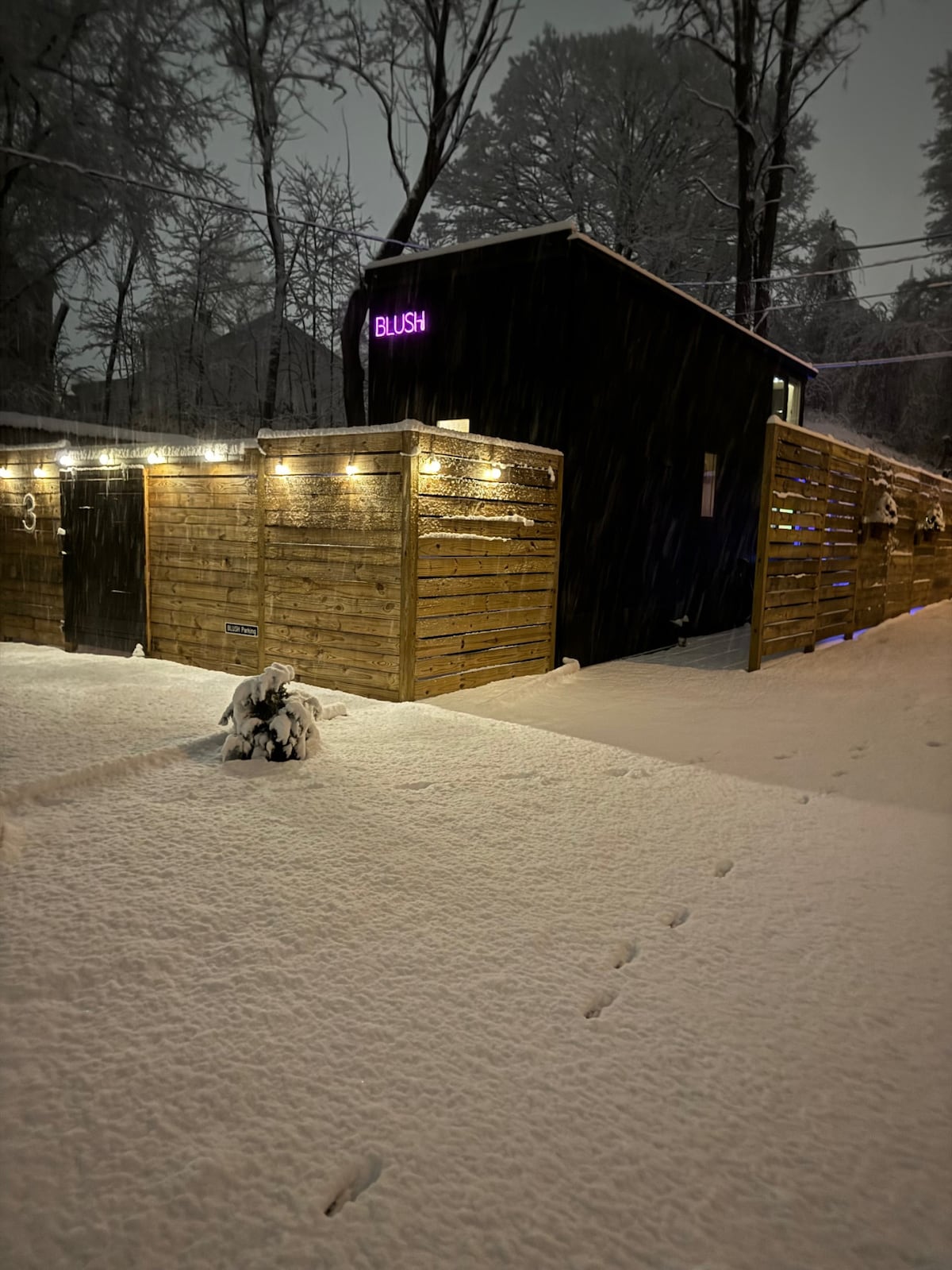 Blush & Bubbles for December stays. Romantic, boutique-luxe tiny home with private hot tub, firepit, and dreamy loft lounge. Plush queen bed, full kitchen, and curated charm throughout. A peaceful oasis just 2 mins from Chatham’s Main Street lined with restaurants, brewery, shops & theater. The perfect upstate NY getaway for couples—hike, visit galleries, stroll to dinner, or unwind in your own private spa oasis at @artparkhomes.