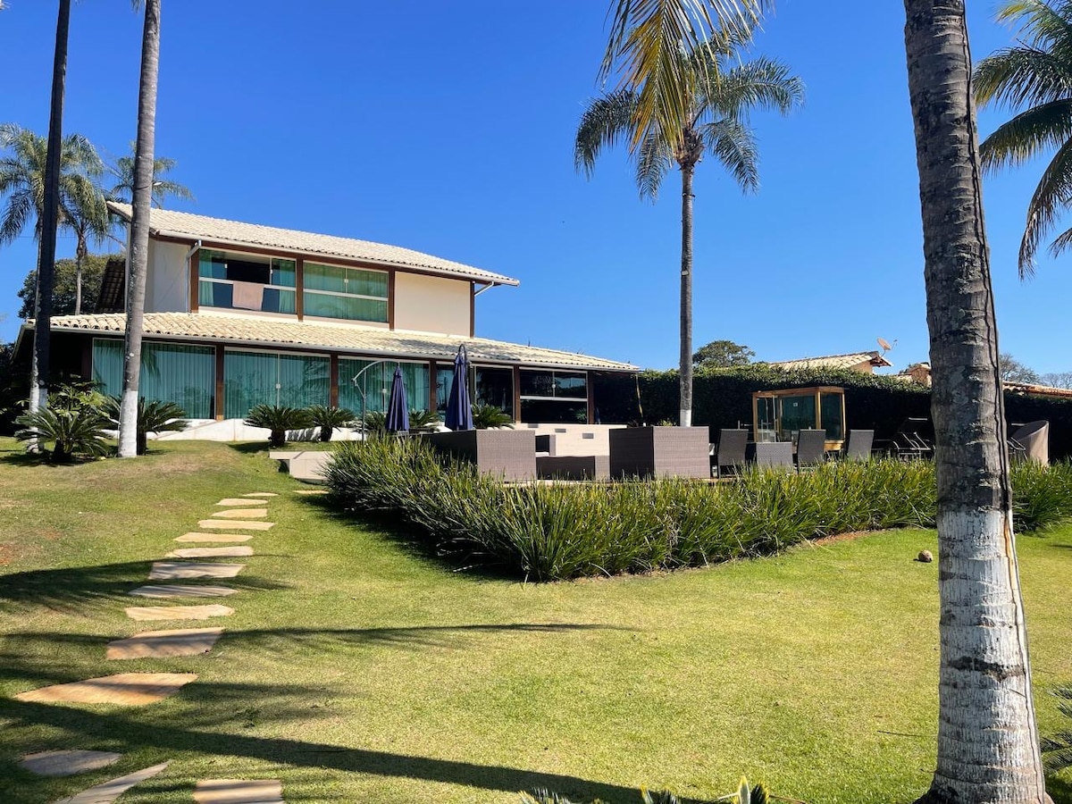 Casa em Escarpas do Lago, con 06 suites con aire acondicionado, terraza, garaje cubierto, sala de estar, piscina, jacuzzi climatizado, baño y zona gourmet con zona de barbacoa. Hay 4 suites cubiertas y 2 suites más con acceso desde el exterior de la casa. Tiene capacidad para 19 personas, todas en camas.