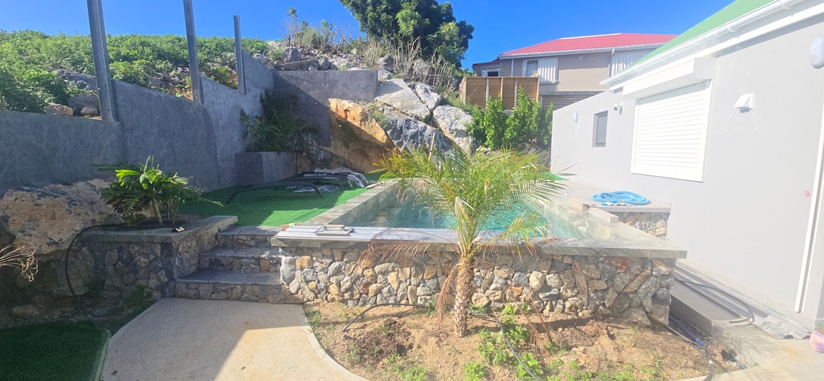 Villa nueva, muy agradable y relajante, con magníficas vistas a la bahía de Petit Cul de Sac. Este alojamiento está lleno de encanto con su pequeña casilla tradicional St Barth (3er dormitorio), ideal para una estancia familiar ... Se compone de una cocina equipada con comedor y un pequeño salón exterior que da a la piscina y a la vista al mar. Un espacio de estar con aire acondicionado (TV). 2 dormitorios, vestidor y pequeño escritorio, 2 baños. ¡Se sentirá como en casa!
