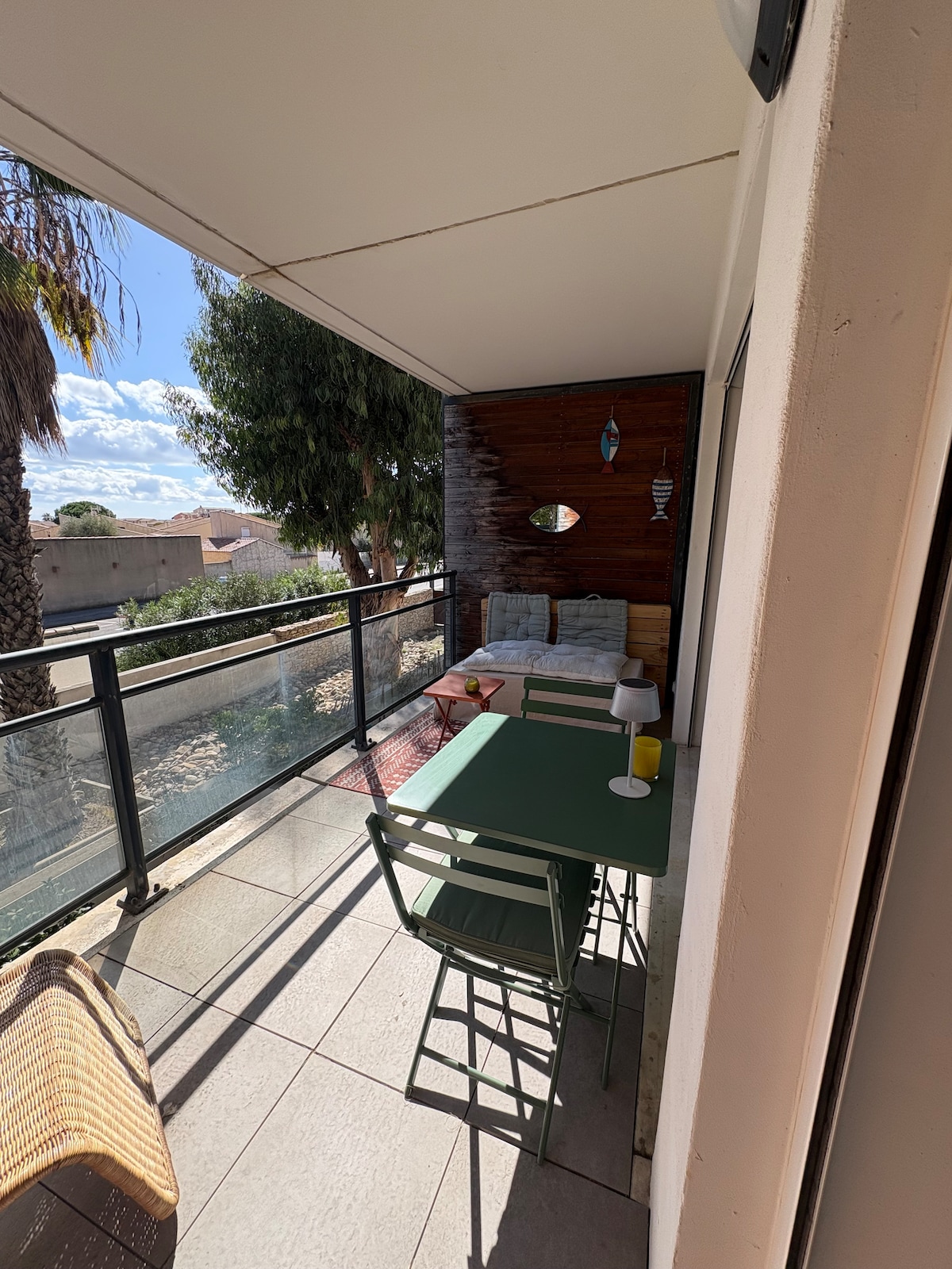 Détendez vous dans cet appartement climatisé calme et cosy entre amis ou en famille pouvant accueillir jusqu'à 6 personnes. L'appartement se situe à 40m de la plage du Grazel avec une petite vue mer et un accès direct à la plage par le portail de la résidence. Idéalement situé proche de la plage, du port, commerces, activités, restaurants et à 5min de la Balnéo et Pirate Parc Tout est accessible à pied ou en vélo. Résidence calme et sécurisée avec place de parking Wifi Chien accepté