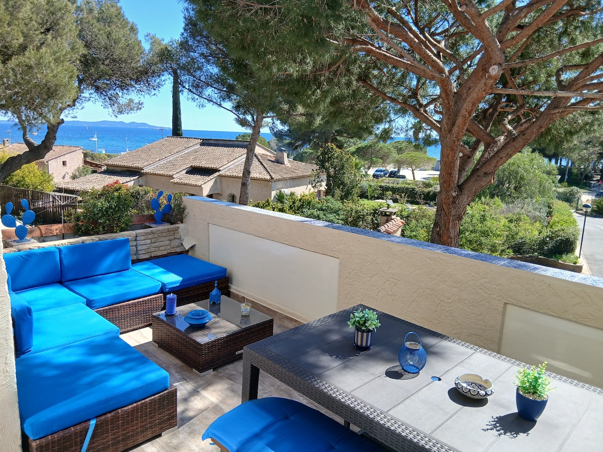 You will be our only guests in our heaven of peace! You have the option of renting either our luxurious 33 m2 (353 sq2) studio, equipped for two people, or this same studio plus an extra room, for four people maximum (60 m2- 642 sq2 total) You would benefit from a 86 m2 (920 sq2) private terrace with a 180° panoramic breath-taking view on the Mediterranean and the Îles d’Or, as well as an amazing pool reserved only for our guests, overlooking the villa, with an equally incredible view!
