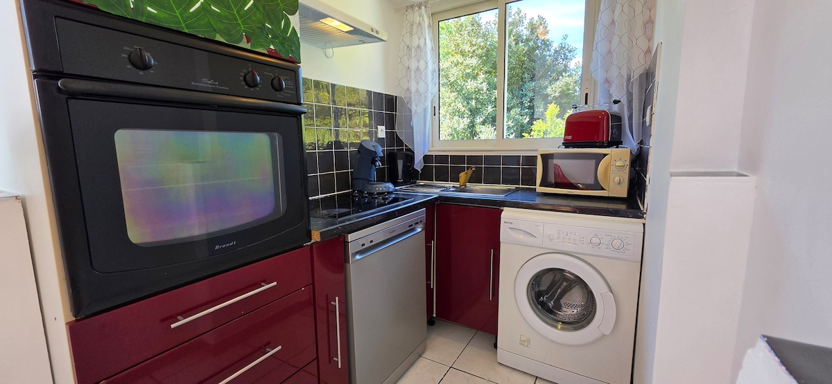 Escápate a la impresionante Costa Azul y experimenta la Provenza en un estudio cuidadosamente diseñado por arquitectos propietarios. Despiértate con impresionantes vistas a la colina y al mar desde tu terraza privada y disfruta de todas las comodidades modernas. Camina hasta la playa de arena y explora las calas con un kayak de mar de cortesía. Convenientemente ubicado a 10 minutos de la estación de tren local y a 25 minutos del aeropuerto de Marsella con aparcamiento gratuito. ¡Una aventura inolvidable te espera en la Costa Azul de la Provenza!